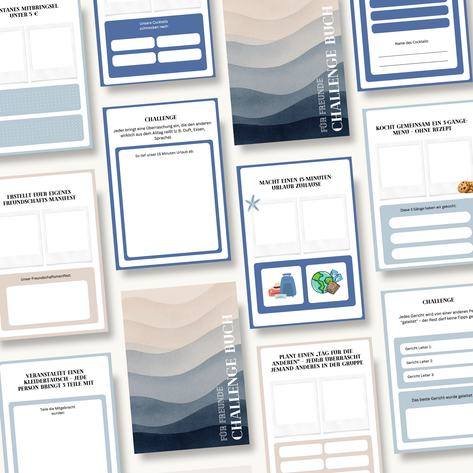 Jede Challenge wird direkt im Buch festgehalten – mit euren Antworten, Bildern oder kleinen Anekdoten. So entsteht nach und nach euer ganz persönliches Erinnerungsalbum, das ihr immer wieder durchblättern könnt.